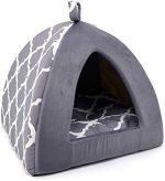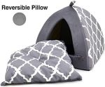 Crafted with soft fabric and featuring a supportive foam structure, this pet tent maintains its shape while offering comfort and security. The interior includes a plush cushion that is both removable and washable, ensuring easy maintenance. Its neutral gray lattice pattern suits any home décor, making it a functional yet decorative pet accessory.