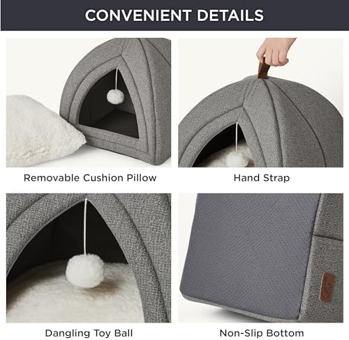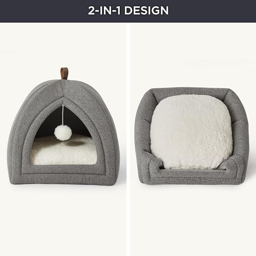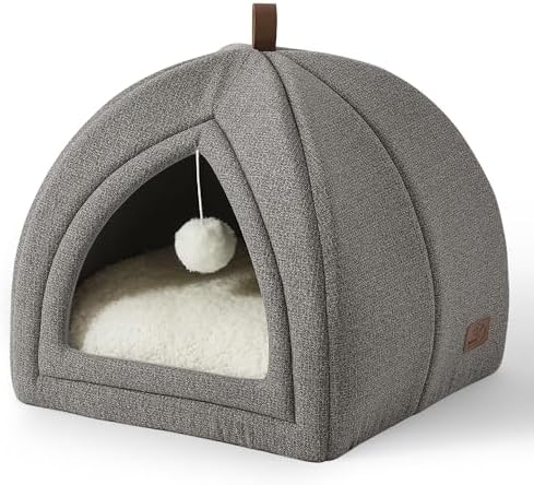 Give your pet a cozy retreat with this 2-in-1 cat cave bed, designed for kittens, cats, and other small pets. This stylish grey tent-style bed doubles as a hideaway cave and a soft lounging mat, offering both privacy and comfort. Crafted from durable fabric and featuring a cushioned, removable pillow, it ensures a warm and snug environment perfect for naps or relaxation.