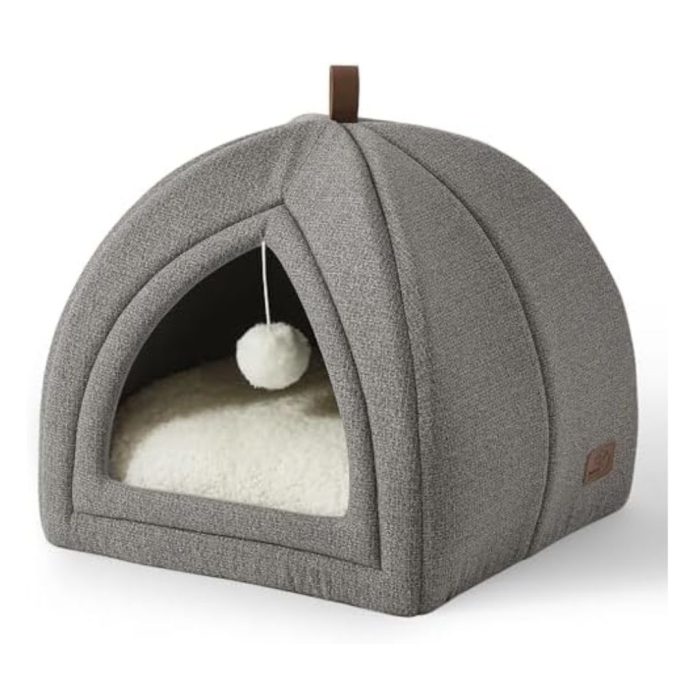 Description Create a safe, stylish, and cozy space for your furry companion with this gray pet tent soft bed, perfect